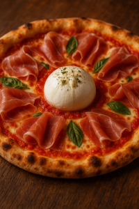 Inicialmente, apresentamos a mais recente adição ao nosso cardápio. Basicamente, a base desta pizza leva a cremosidade da burrata fresca. Logo após, nós adicionamos o sabor intenso do presunto parma para criar uma experiência única.